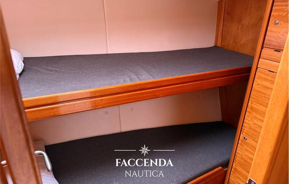 E' una barca a vela spaziosa e confortevole proposta con il layout 5 cabine e 3 bagni; combina una solida costruzione in serie con ampi spazi, alta manovrabilità e doppia timoneria. Ampio pozzetto in teak ideale per la vita all'aperto, un'ottima abitabilità interna e intensa luminosità a grazie a due finestrature in dinette, otto obiò a scafo e al colore chiaro del mogano utilizzato