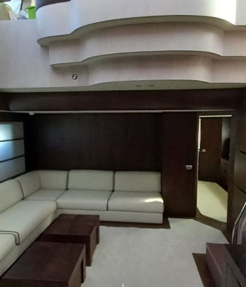 Cabina armatoriale - ampio letto matrimoniale con cassetti sottostanti, armadio con ripiani, toletta, divano in pelle e bagno privato con WC elettrico ad acqua dolce, lavabo e doccia