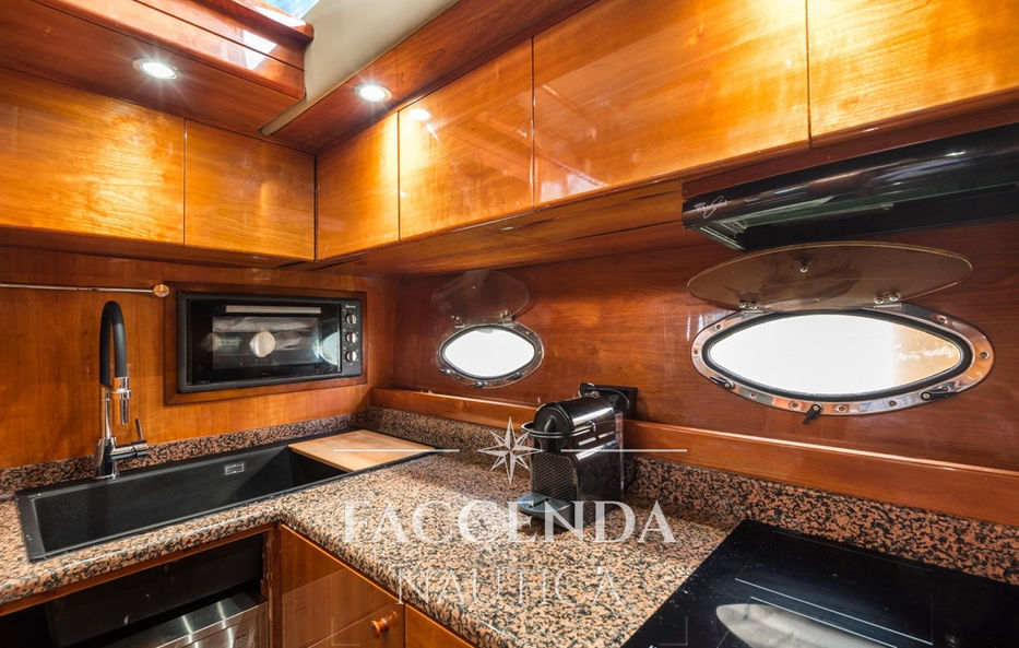 Aria condizionata, Bimini, Cuscineria completa, Cuscineria di poppa, Cuscineria di prua, Cuscineria fly, Cuscineria Pozzetto, 4 Frigorifero interno, ICE Maker (2024), Inverter, Telecamera, Tendalino, WC marino elettrico, Pozzetto teak con tavolo e sedie