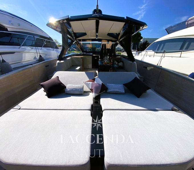 Interni spaziosi, accoglienti e luminosissimi; lo yacht è caratterizzato da murate abbattibili, ampie vetrate e un hard-top in carbonio a garanzia di un pieno confort in crociera e nelle uscite giornaliere.