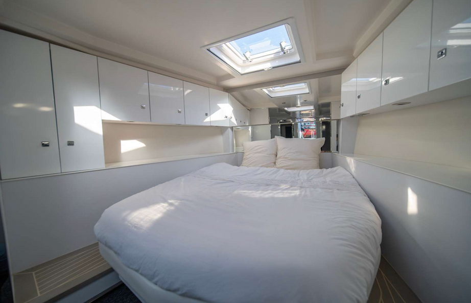 Salire a bordo della VanDutch 55 rappresenta il desiderio di liberarsi dalla vita di tutti i giorni, la voglia di lasciarsi catturare dal fascino dell’oceano, godendosi le ampie aree del ponte per rilassarsi nei salotti e navigare comodamente nelle ampie zone esterne dell’imbarcazione.